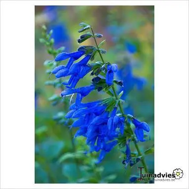 Salvia guaranitica 'Blue Enigma' bloeit met zeer diepblauwe, grote bloemen aan zwarte stelen.