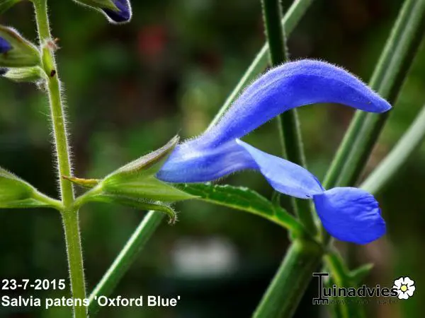 Salvia patens 'Oxford Blue' is een knolachtige vaste plant uit Mexico maar in ons klimaat als een éénjarige gekweekt.