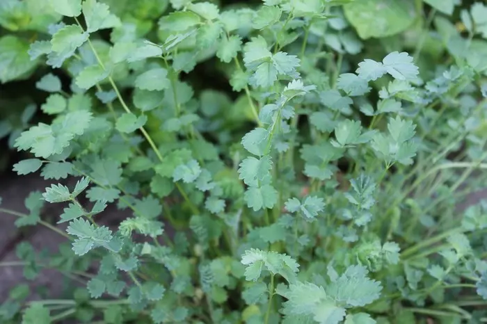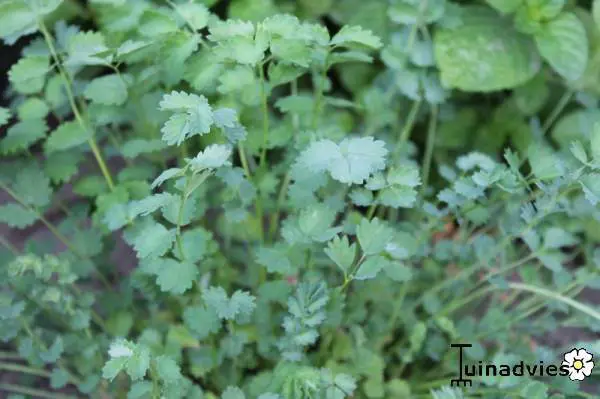 Sanguisorba minor is een sterke, vaste plant met een spreidende groeiwijze en kleine blauwgroene blaadjes.