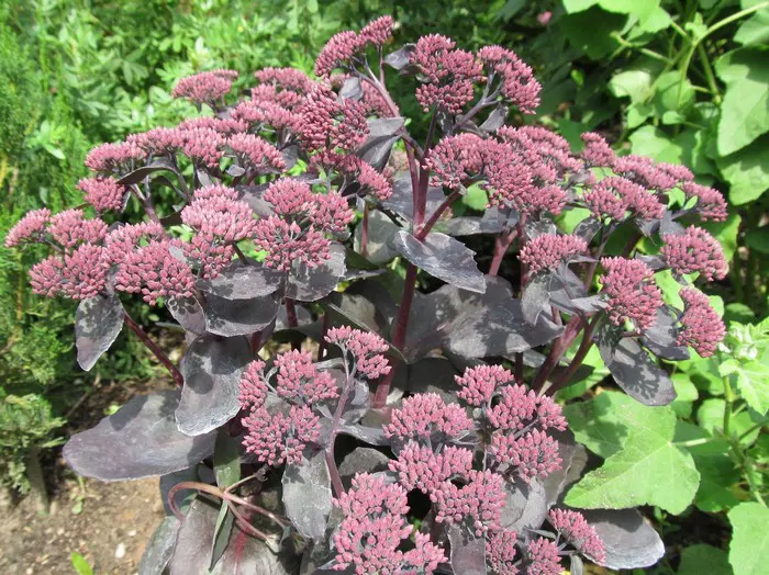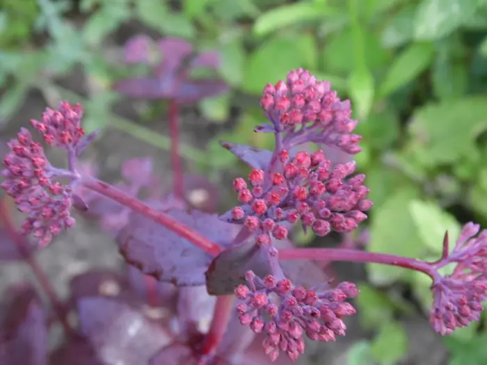 Sedum 'Purple Emperor' (Atropurpureum Group) is een fantastische variëteit, die zeer mooi sappig, glanzend roodpaars blad combineer met een zeer heldere rozerode bloei.