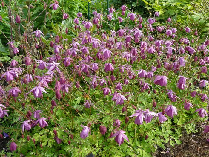 Semiaquilegia ecalcarata lijkt op een gewone akelei maar bezit geen sporen aan de achterkant van de bloemen. De knikkende bloemen staan op rechte stengels en bloeien in paarse tot roodpaarse tinten.