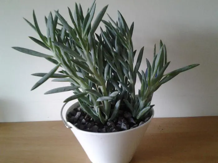 Senecio Aquarine is een bijzonder mooie plant met cilindrisch gevormde bladeren bedekt met een grijsblauw waslaagje.