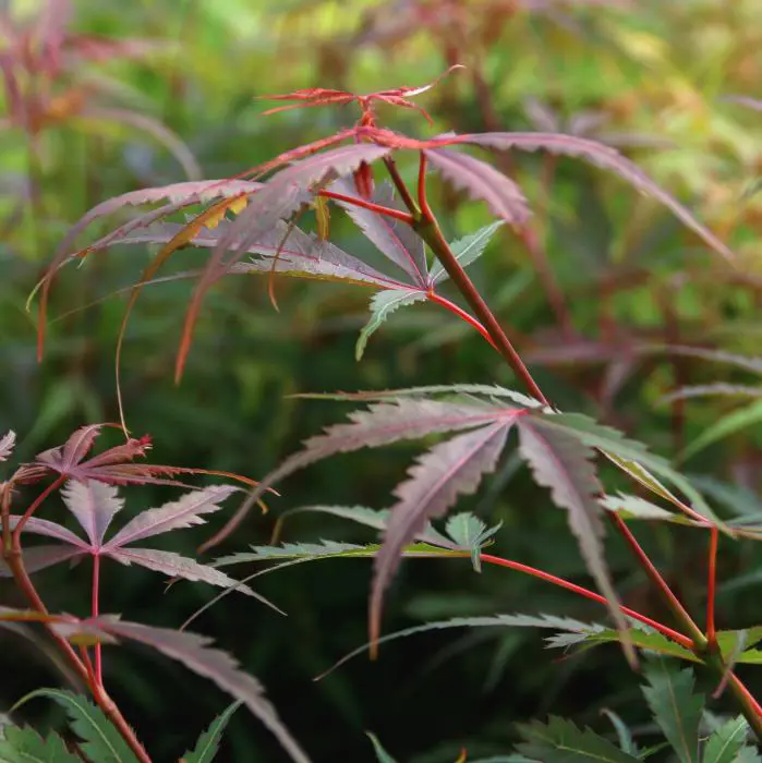 Acer palmatum 'Jerre Schwartz' is een kleine Japanse esdoorn met een rechtopstaande, compacte slanke silhouet en talrijke en dunne takken.