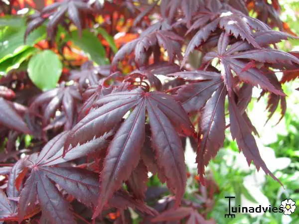 Acer palmatum 'Trompenburg' is een kleine snelgroeiende boom met een rechtopgaande, brede groei en diep ingesneden blad dat enigszins bol staat.
