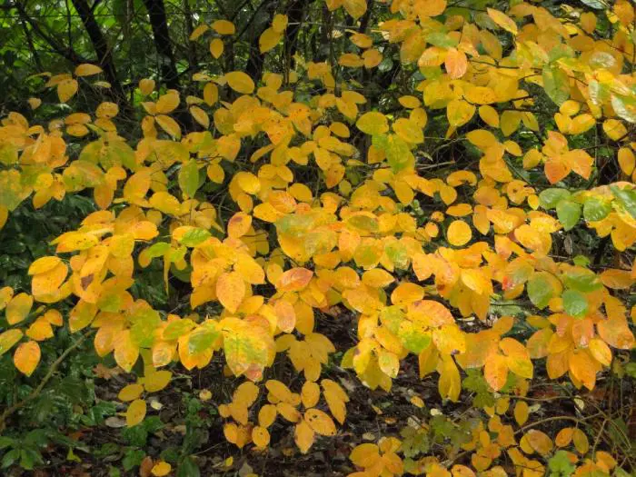 Amelanchier canadensis lijkt op Amelanchier lamarckii maar verkleurt in de herfst naar oranjerood.