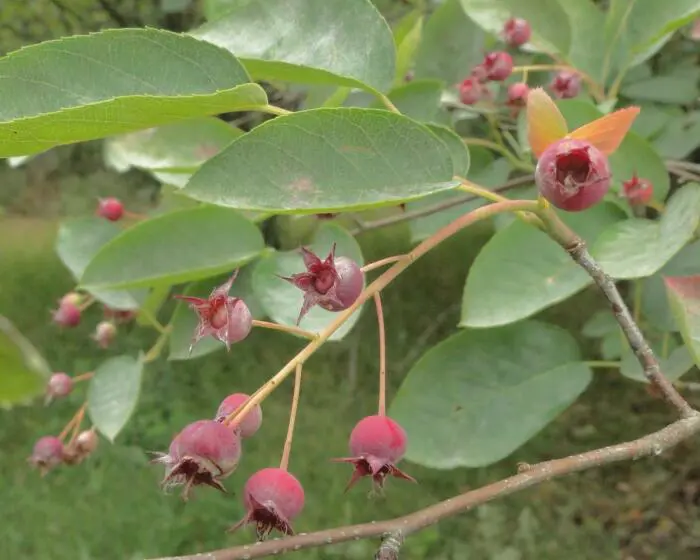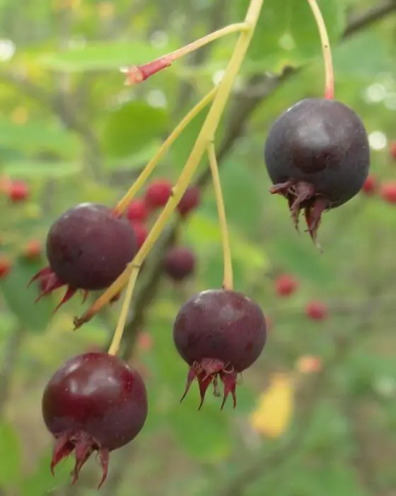In de zomer produceert de struik eetbare zoete, rode tot zwart verkleurende vruchten van kleine bolvormige bessen die in Canada "kleine peren" worden genoemd en zeer gegeerd worden door de vogels.