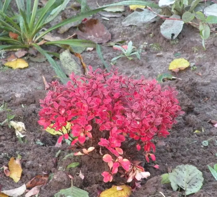 Berberis thunbergii 'Admiration' is een prachtige doornige, compacte dwergstruik met kleine ronde, glanzende blaadjes. Lopen koraalrood uit om dan te verkleuren naar paars met gele randen. In het najaar krijgen ze dan een oranjerode kleur.