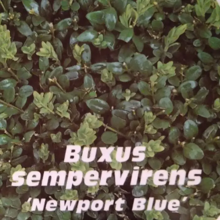 Buxus semp. 'Newport Blue' is een dichte struik met blauwgroen blad.