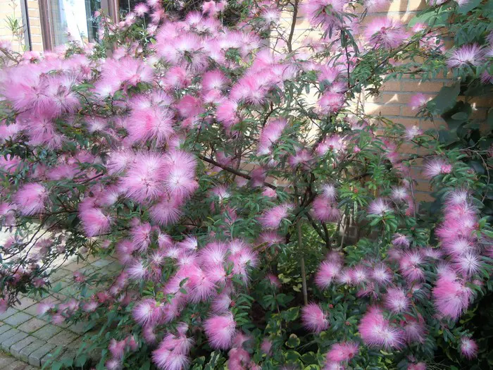 Het zijn vooral de bloemen die opvallen met hun apart uiterlijk, lijken wel roze poederkwastjes.