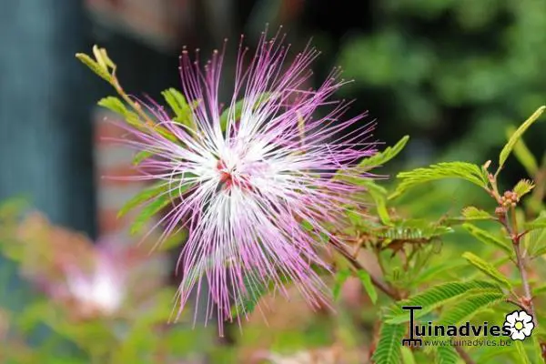 Calliandra surinamensis is een vertakte struik/boom afkomstig uit Suriname met mooi gevederdebladeren.