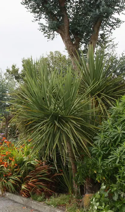 Dracaena australis heeft veel smaller blad. en winterhard tot -10°C.