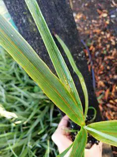 D. indivisa is te herkennen aan de brede bladeren van 10cm breed met een gele/oranje nerf in het midden, winterhard tot -3/-6°C.