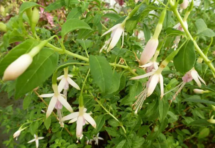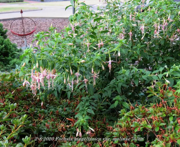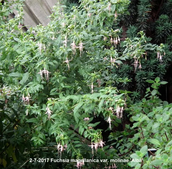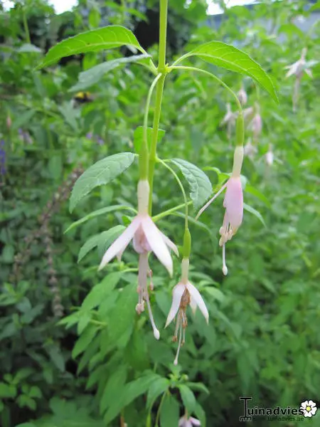 Fuchsia magellanica 'Alba' heeft een opgaande groeiwijze en wordt gemakkelijk 80cm.