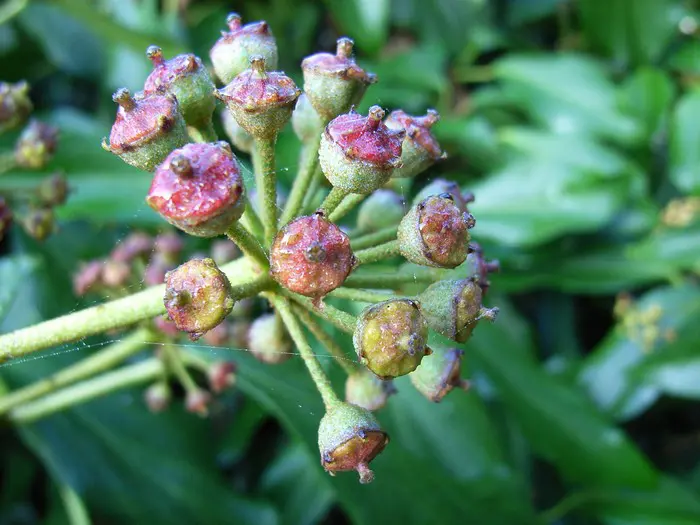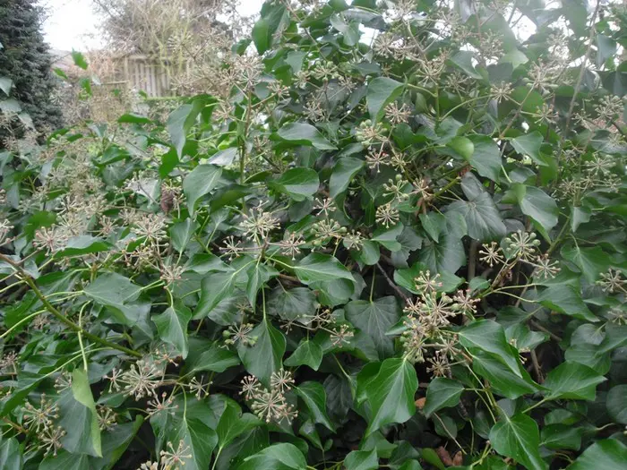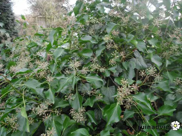 De bloei is onopvallend geel/groen maar later verschijnen de zwarte bessen.