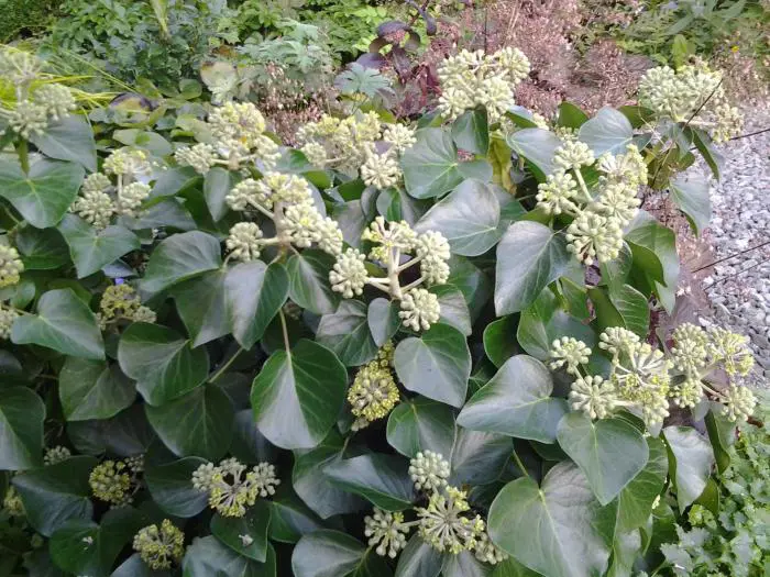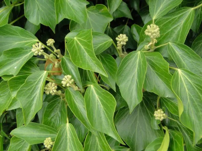 Hedera helix 'Arborescens’ heeft hartvormig gelobd blad.