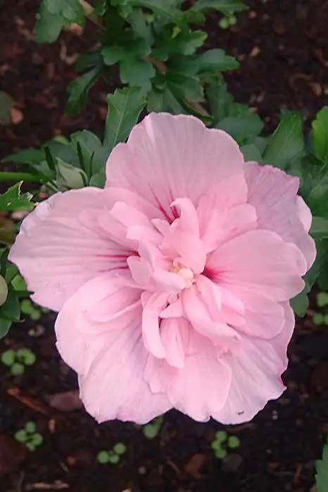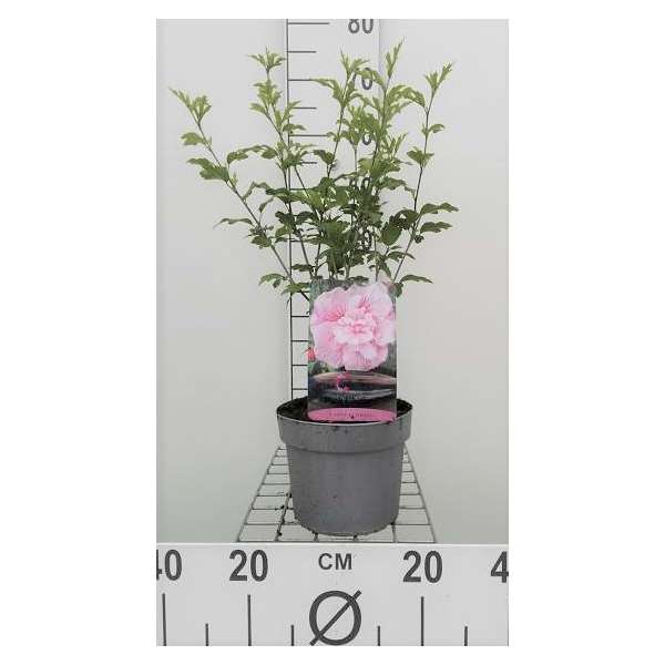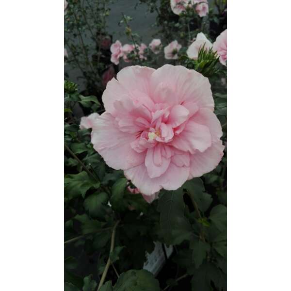 Hibiscus 'Pink Chiffon' is een rechtopstaande heester met een compacte groeiwijze en donkergroene bladeren die in het najaar geel verkleuren.