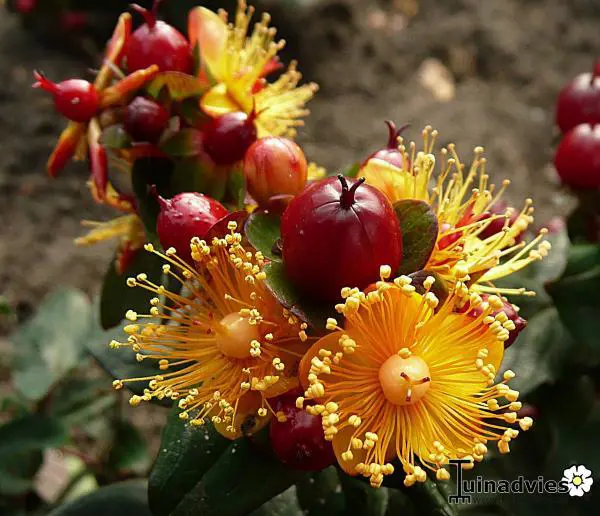Bloeit lang door met helder goudgele bloemen.