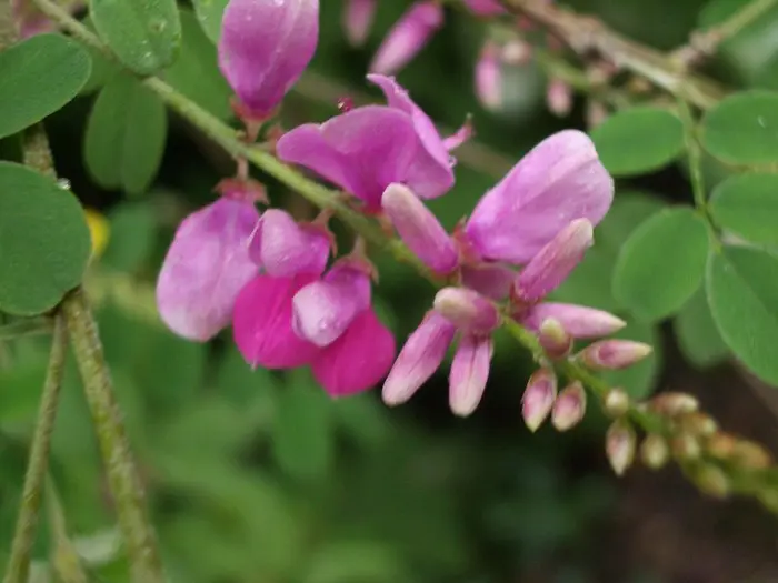 bloeit met dichte trossen van felroze bloemen, zijn eetbaar en ruiken naar vanille.