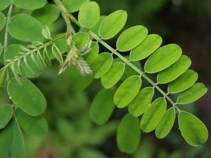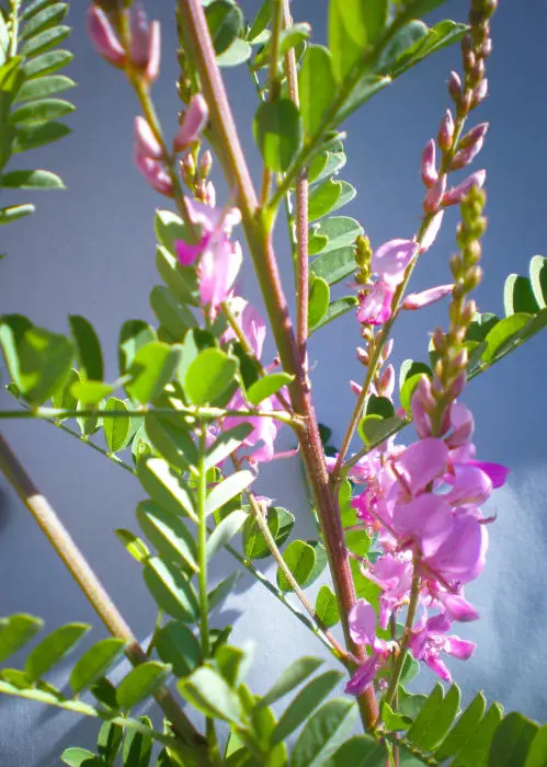 Na de bloei verschijnen in het najaar bruinrode peulen.