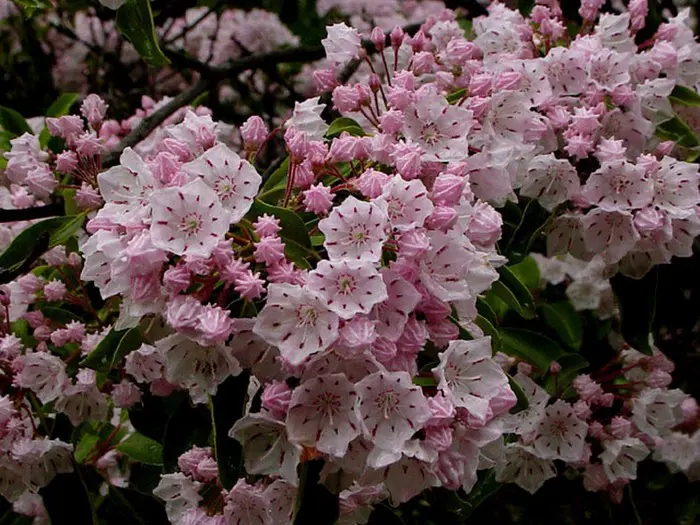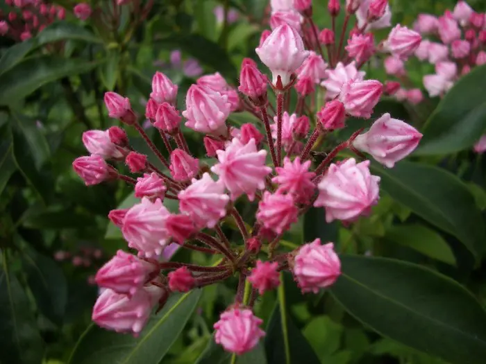 De laurierroos is een groenblijvende, winterharde heester die we zelden in tuinen tegenkomen. Hij is minstens zo prachtig als de alom bekende rododendron en inheems in Noord-Amerika van Canada tot Florida in zomergroene bossen, vaak tussen stenen op zure, vochtige bodem.