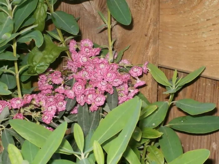 De Kalmia latifolia heeft brede bladeren terwijl de Kalmia angustifolia smalle bladeren heeft.