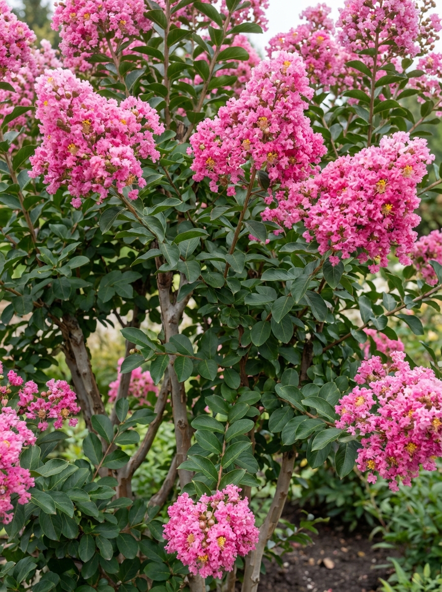 Lagerstroemia indica is een kleine soms meerstammige boom met een vaasvormige kroon crepeachtige, geurende bloemen die het uitstekend doet in ons klimaat.