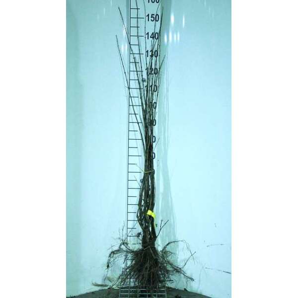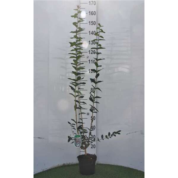 Een heester met een opgaande en bossige groeiwijze en blauwgroene bladeren.