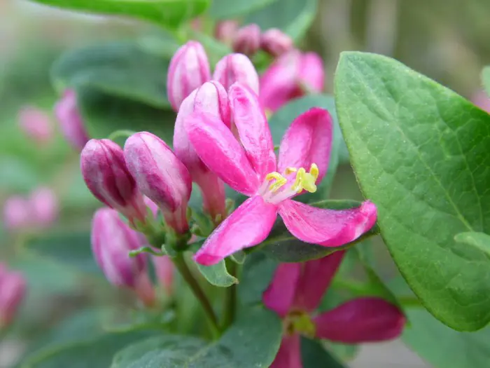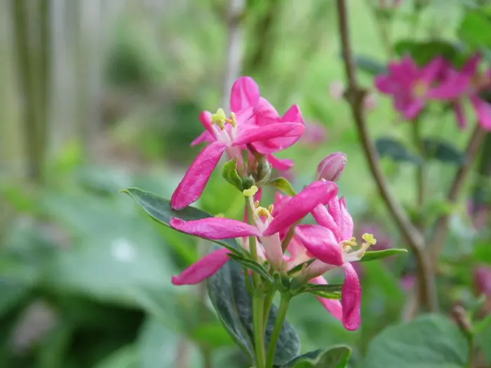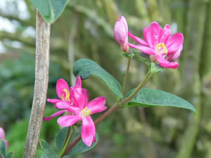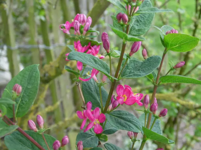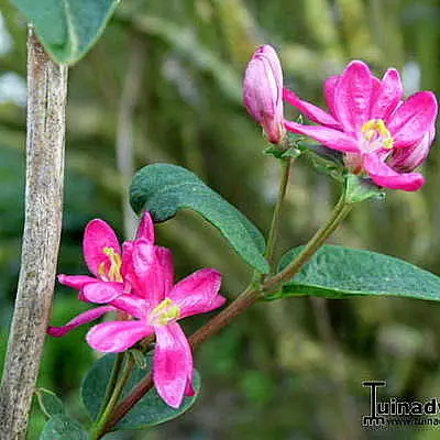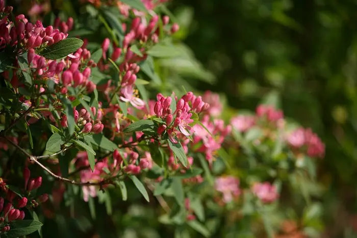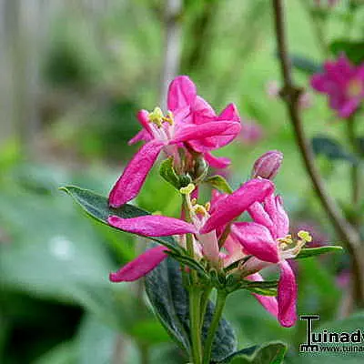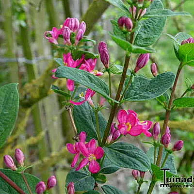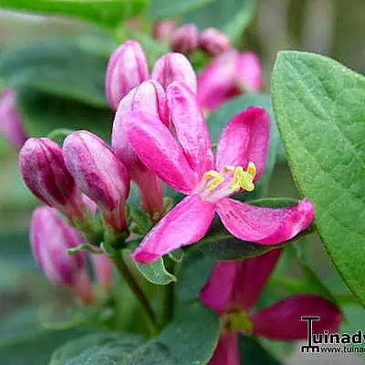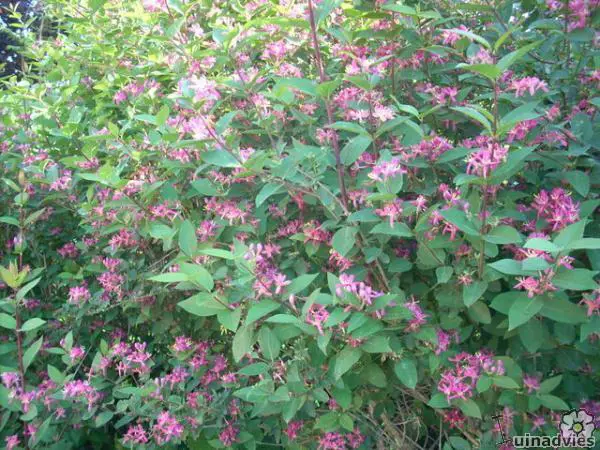 Langs de takken bloeien mooie witte, donkerrode, donkerroze of roze bloemen met felgele meeldraden, gevolgd in de zomer door oranjegele tot rode giftige besjes.