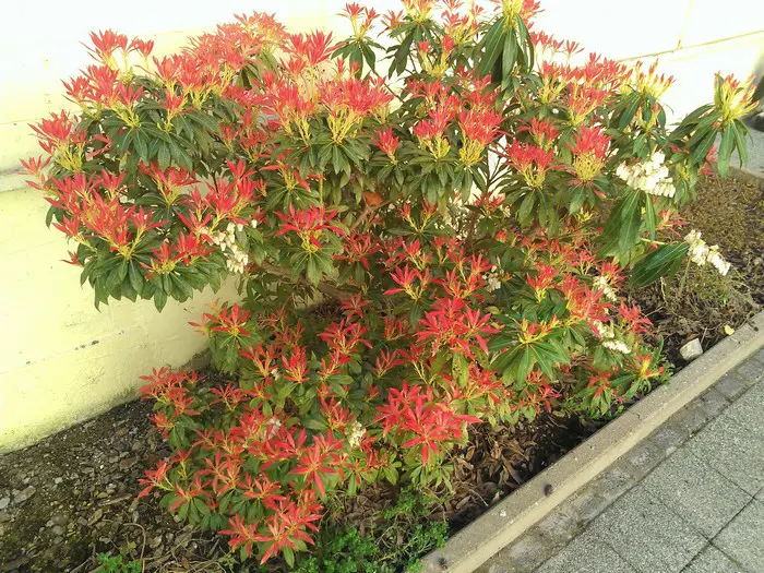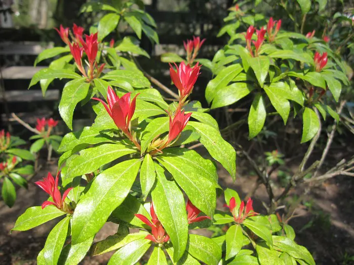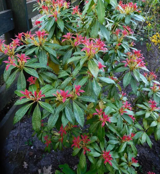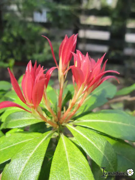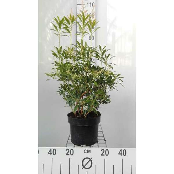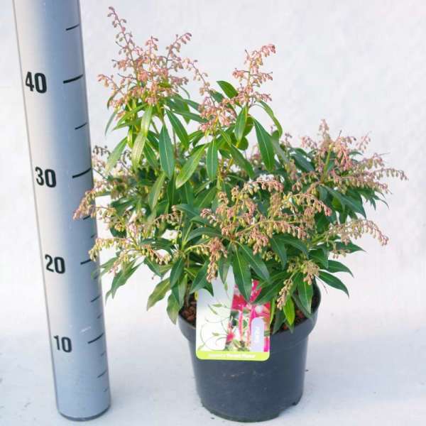 Pieris 'Flame of the Forest' is een dicht vertakte, rechtopstaande heester met een bossige groeiwijze en mooi glanzend groen blad dat rood tot koraalroze uitloopt in de lente.