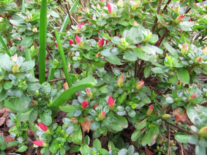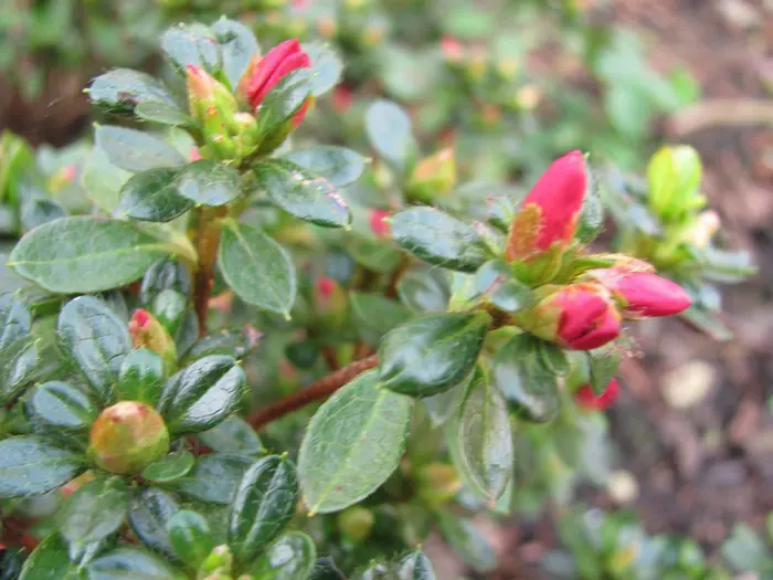 in tegenstelling van de Rhododendron /Azalea mollis die zijn blad verliest in de winter.