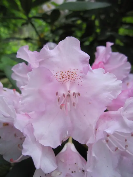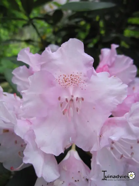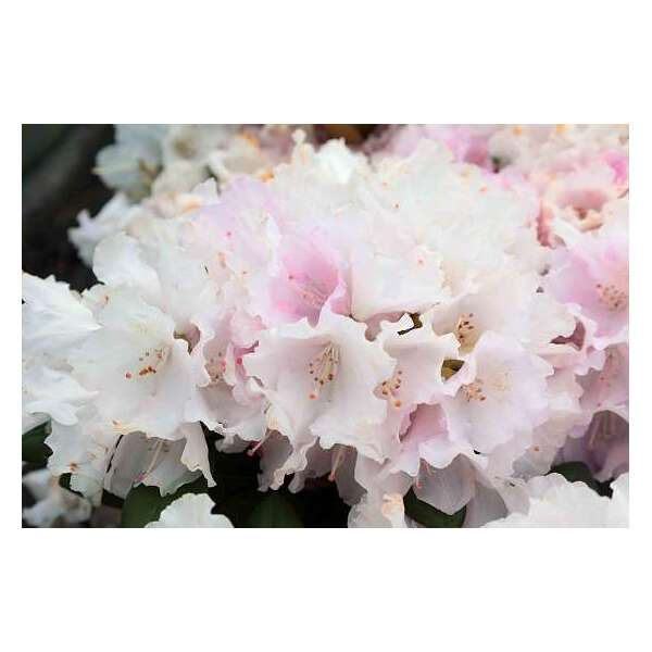 Rhododendron yakushimanum 'Silberwolke' bloei zilverroze naar wit verkleurend met zacht viltig blad.