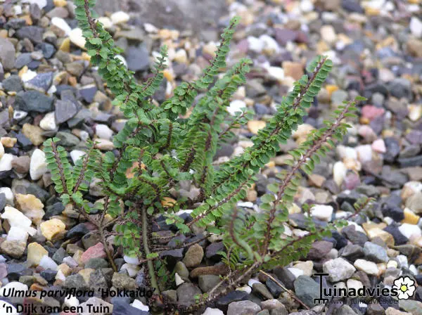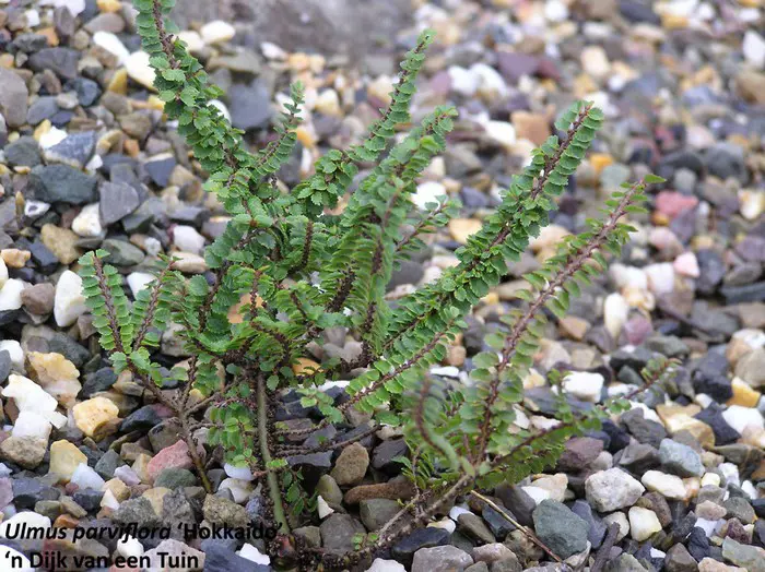 Ulmus parvifolia 'Hokkaido' is een zeer traaggroeiende olm dat vooral geschikt is voor rotstuinen of troggen.
