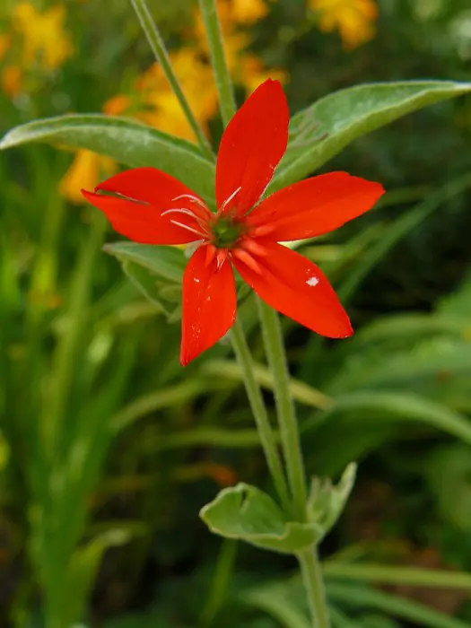 Een vaste prairieplant met lancetvormige, zacht behaarde bladeren.