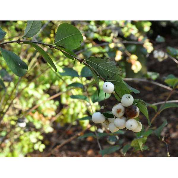 In het najaar verschijnen de erg decoratieve, ronde parelwitte bessen die tot in de winter aan de struik blijven.