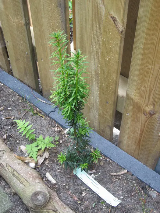 Taxus baccata ‘Summergold’ wordt niet erg hoog, wel erg breed met afhangende twijgen.