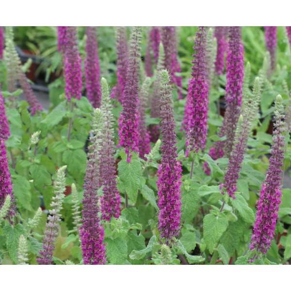 Teucrium hyrcanicum 'Flowtime' is een bossige vaste plant met aromatische, lancetvormige, licht grijsgroene bladeren.