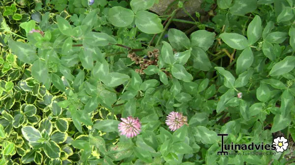 Heeft een samengesteld, drietallig blad met in het midden van het blad een lichte vlek.