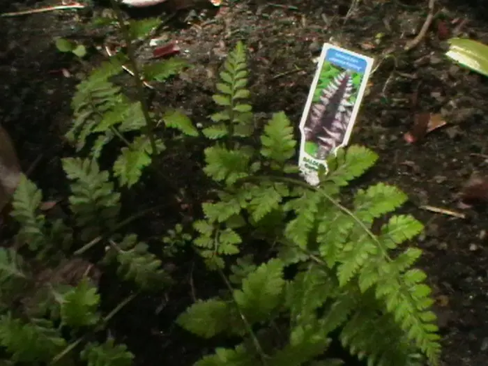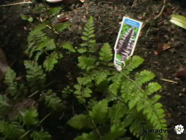 Het blad van de Dryopteris erythrosora 'Japanese Painting' is blauw met grote zilverkleurige uiteinden.De nerven zijn donker rood.