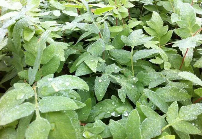 Pracht van een varen met grote violetrode dubbelgeveerde bladeren.