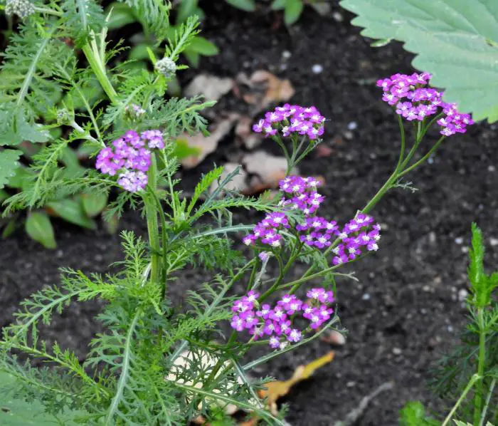 Het is een sterke groeier met prachtig donkergroen geveerd, aromatisch blad en bloeit met afgeplatte schermvormige tuilen van magentaroze tot kersenrode bloemen met een klein wit hartje. De bloemen verbloeien later naar levendig roze, zo krijgt men een plant met verschillende rode en roze tinten.