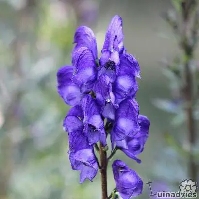 Aconitum napellus is een overblijvende monnikskap met hoge stengels versierd met fluweelachtige paarsachtig indigoblauwe bloemen in de vorm van een helm.