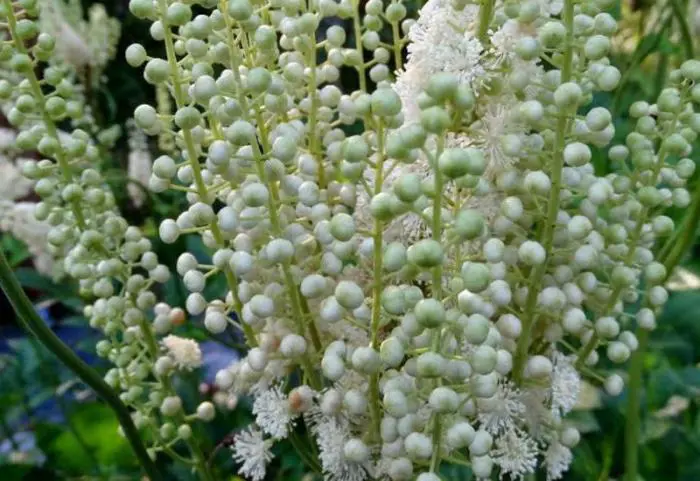Het diepgroen blad doet denken aan die van de astilbe.