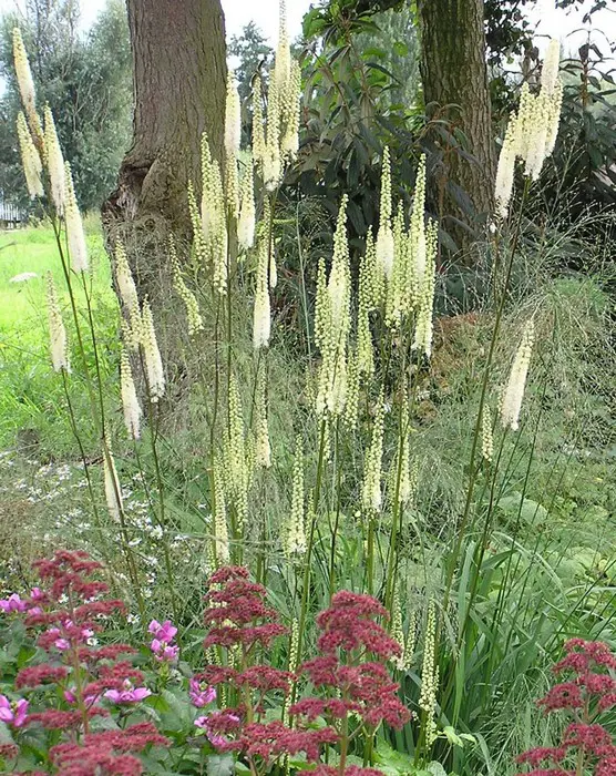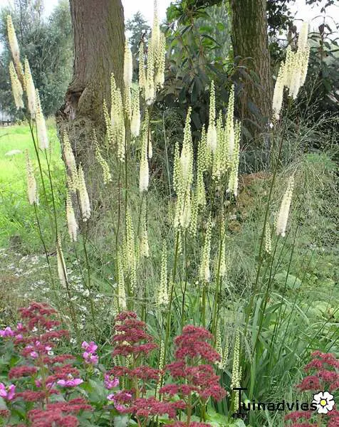 Vormt goed vertakte, hoge stevige, donkere stengels met grote witbloeiende aren (30-40cm). de bloemen geuren heerlijk zoet.