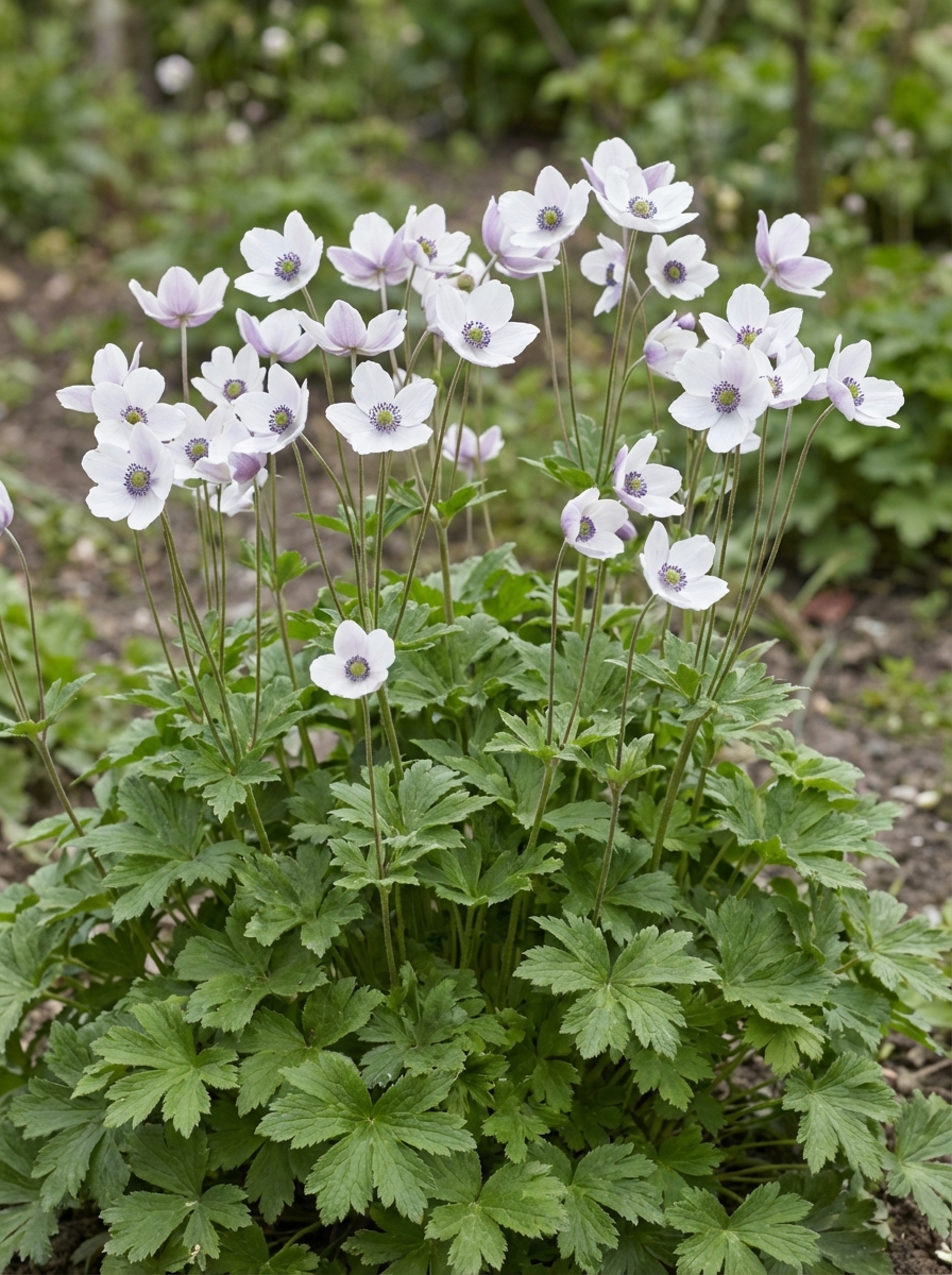 Een witte anemoon met zilvergrijze meeldraden en een lichtgeel hartje, bloeit veel vroeger dan de herfstanemoon namelijk in juni en juli.Ze wordt 60cm hoog, en mag in de zon of halfschaduw staan.