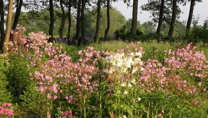 'Spring Magic' is een serie van lage akeleien in verschillende kleuren met grote bloemen.