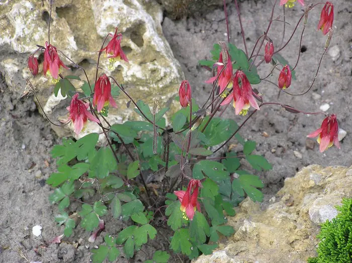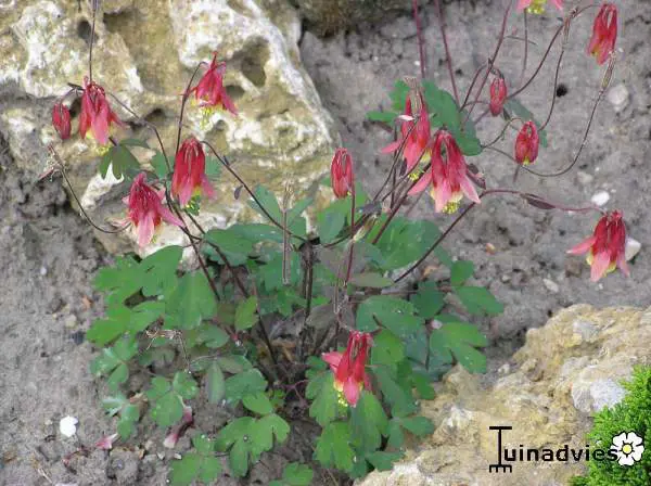 Aquilegia canadensis komt uit het noordoosten van Amerika.