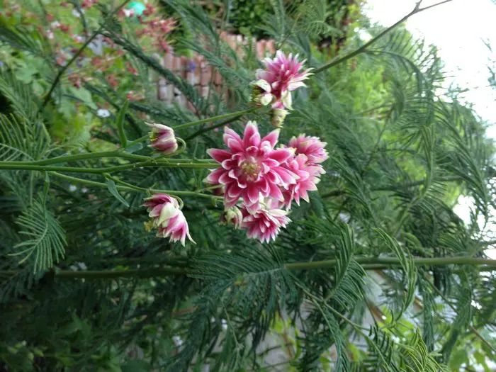 Het blad is blauwgroen en varenachtig.
