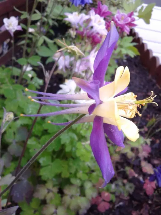 Aquilegia 'Mrs. Scott Elliott' is een zeer sierlijke vaste plant met enkelvoudige, één- tot tweekleurige bloemen in een verscheidenheid van kleurencombinaties.