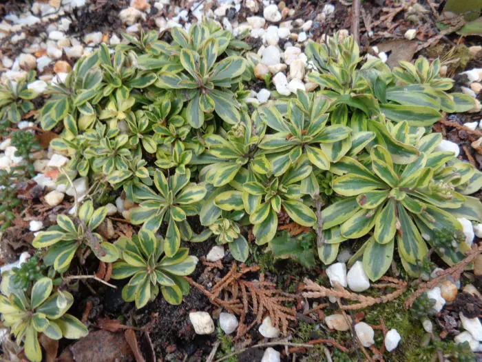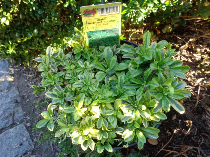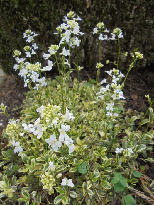 Arabis ferdinandi-coburgi 'Old Gold' is een geel bontbladige Arabis die er heel anders uitziet dan de andere soorten. De blaadjes zijn namelijk wasachtig en ronder. De witte bloempjes zijn niet opvallend.