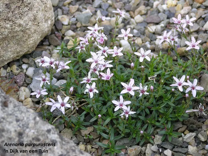 Een roze kruipend plantje, vormt dichte zoden in de zomer.